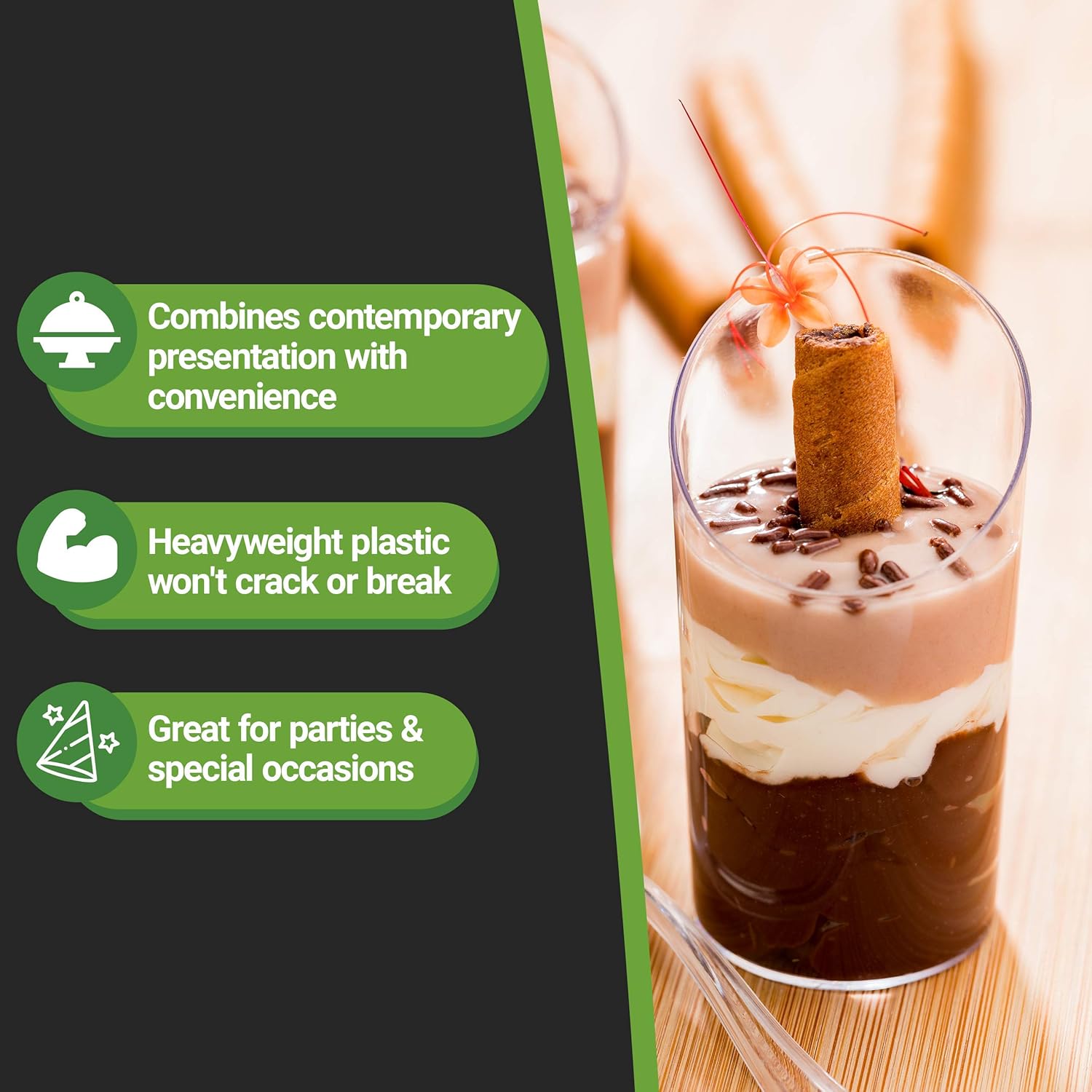 - VERSATILE USE: From serving small-sized desserts to innovative cocktails, these 3-oz shot glasses, add a chic vibe to any culinary creation. Ideal for wedding banquets, parties, and catered events!