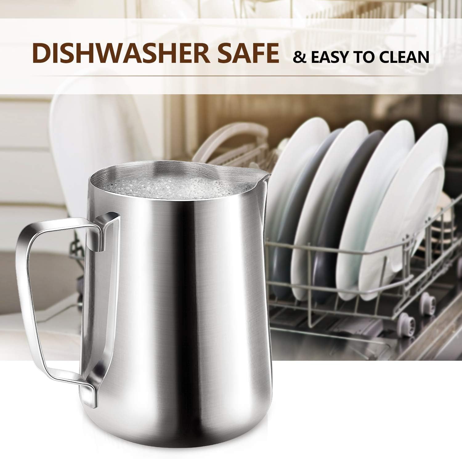- ☕ Safe & Food Grade Material: Our espresso milk frothing pitcher and coffee art pen are made of Premium Quality Food Grade 304 Stainless Steel; Rust-proof and Stain-proof, Strong and Durable, Easy to clean and Dishwasher safe