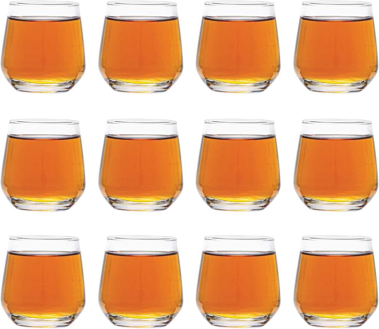 - GREAT FOR TASTING: Hosting a tasting party? Our glasses are the perfect size for small bits of wine or liquor and come in a set of twelve, so you have enough for your guests. The bulbous shape and tapered rim direct the aromas towards your nose, so you can appreciate all the nuances of your drink.