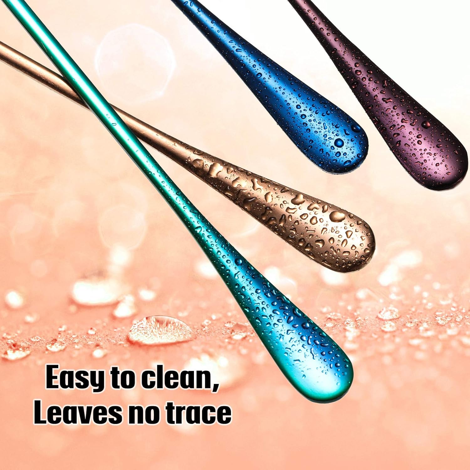 - Package included: 8 pieces stainless long handle tea spoon in 4 different color, the length is about 7.48 inch/ 19 cm, can directly to the bottom of ice cream, soda glass and dessert cup, milk shake, tall coffee mugs