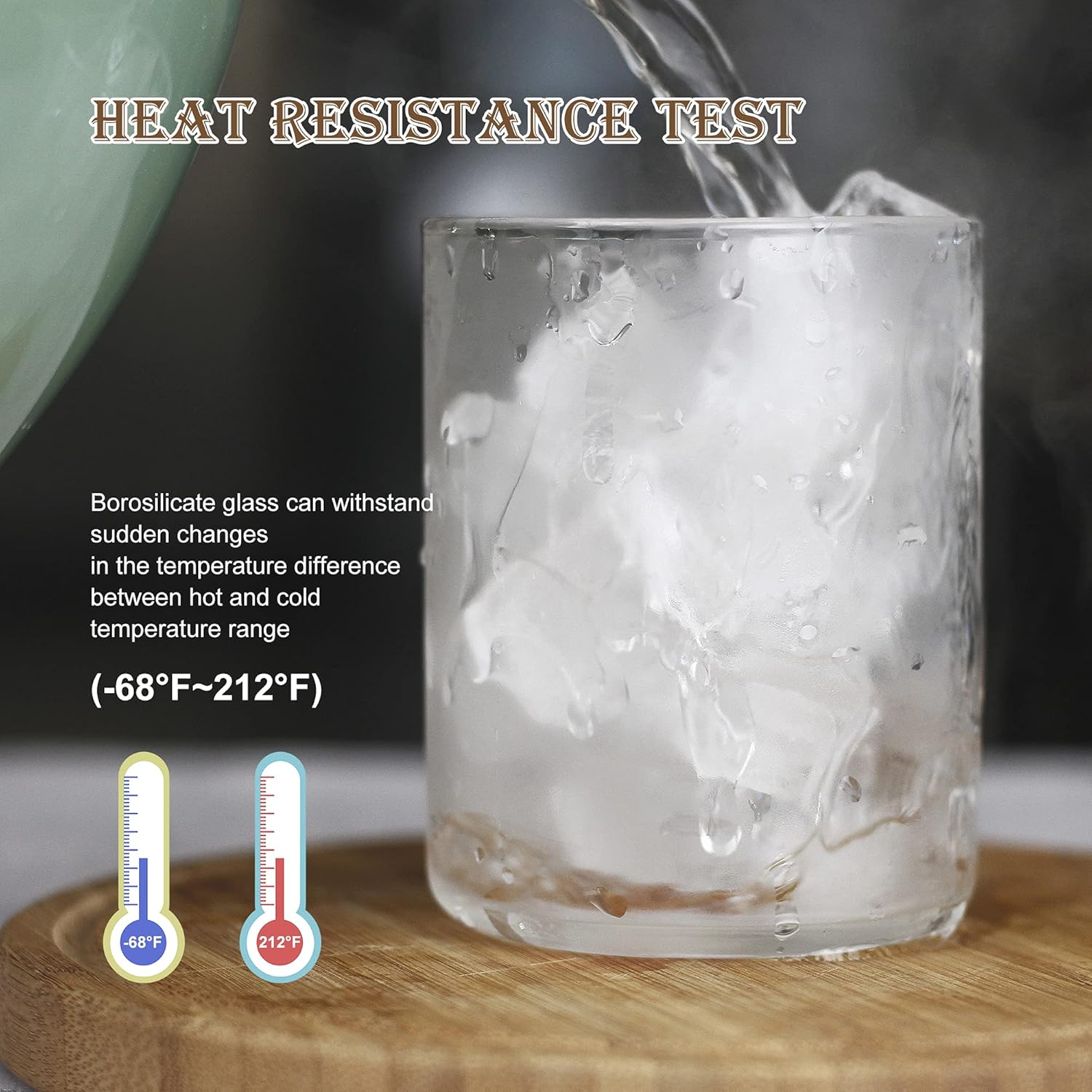 - High Quality - This clear borosilicate drinking glass can withstand sudden changes in the temperature difference between hot and cold temperature range(-68°F~212°F),It has extremely high heat resistance and explosion resistance,and is durable.So it can be safely used in dishwashers,microwaves and refrigerators,more durable to stand the daily use.