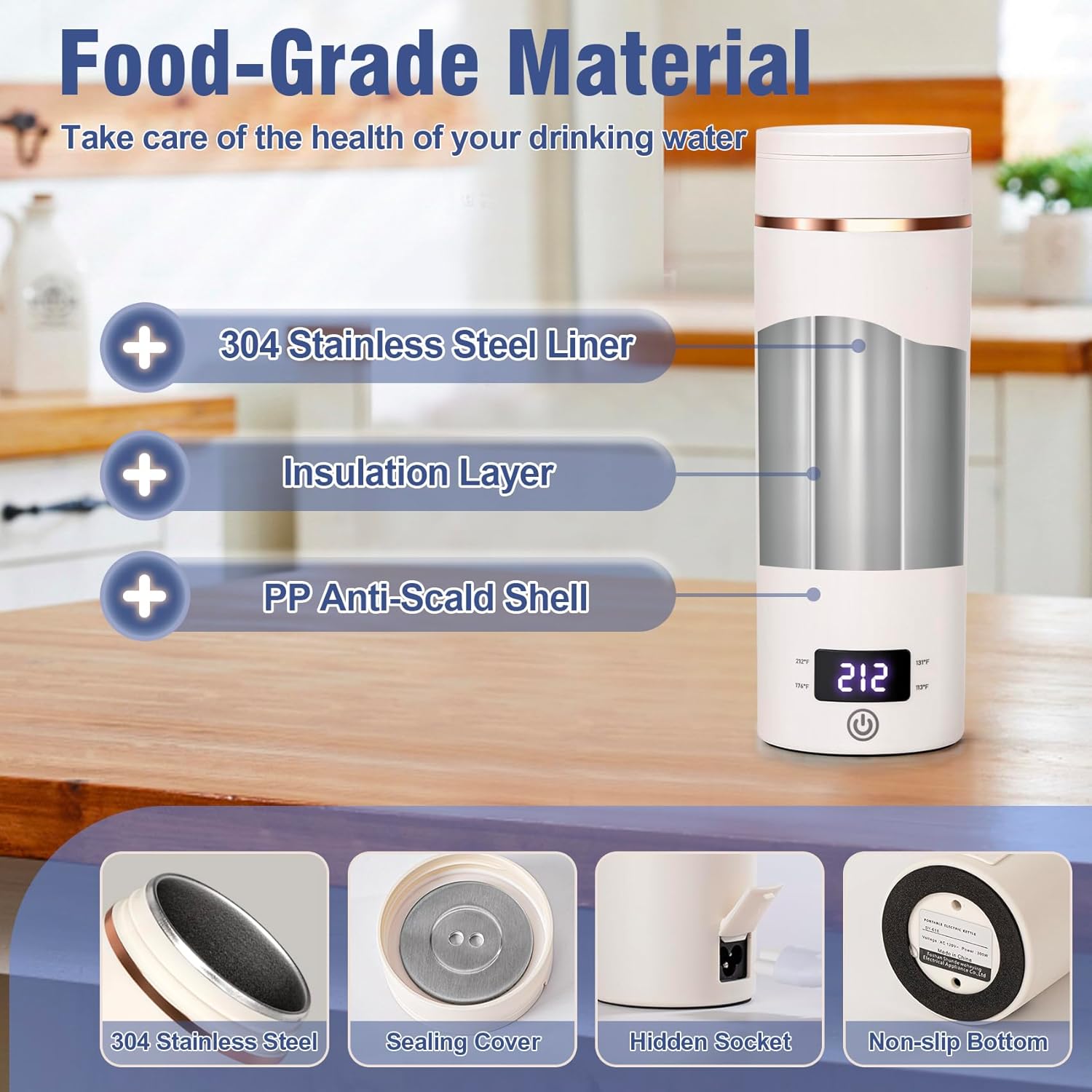 - Food Grade Stainless Steel Materiall: Travel tea kettle is made with a thick, food-grade 304 stainless steel inner pot and seamless design, the PP outer shell prevents burns. Mini electric kettle provides you with healthy water. Enjoy safe and healthy drinking water wherever you go.