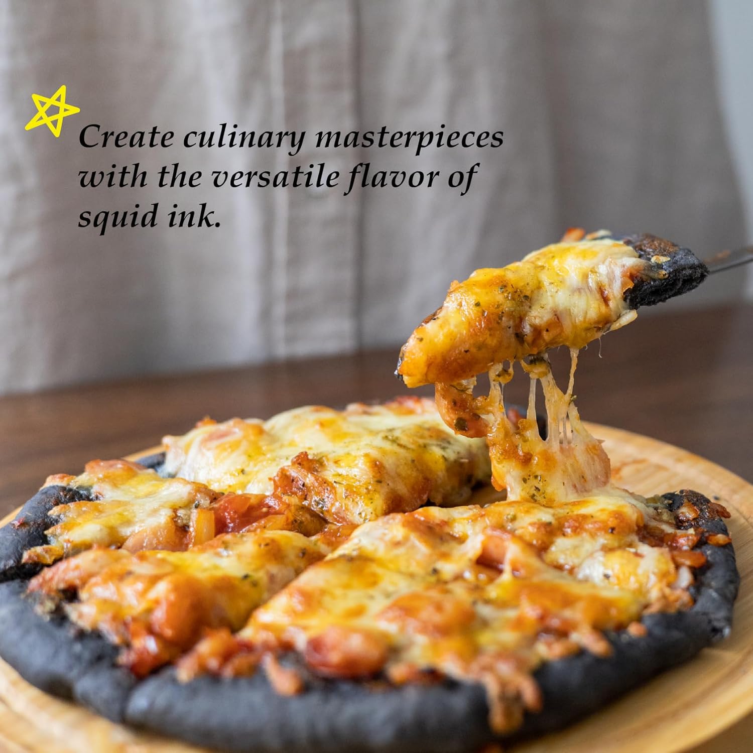- 【Unleashing the Flavorful Potential】This ingredient is a popular addition in Mediterranean and Japanese cuisine, with applications such as squid ink spaghetti, risotto, paella, sauce, soup, pizza, and bread.