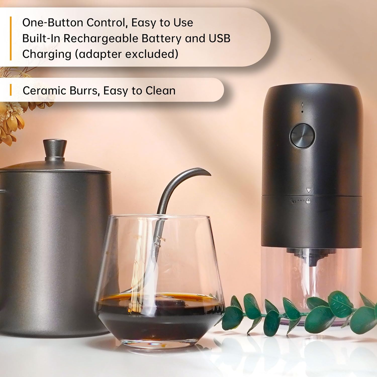 - ☕ PORTABLE ELECTRIC COFFEE GRINDER AND DIGITAL SCALE: The coffee grinder is USB rechargeable with coarseness adjustment system. And the digital scale is designed with timer function to help you achieve the golden ratio of coffee, water, and time.