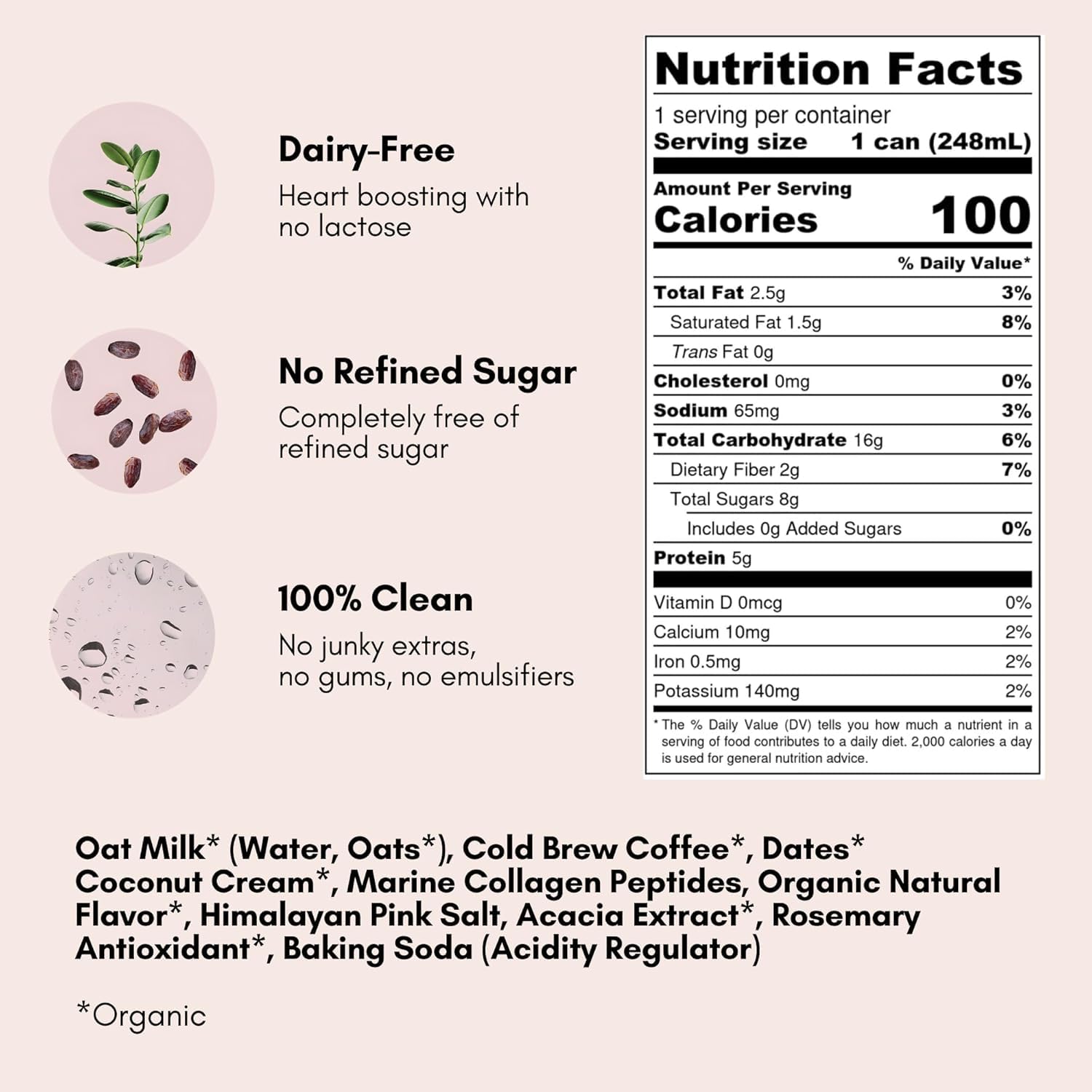 - CLEAN INGREDIENTS - Our oat milk cold coffee drinks are made with the cleanest ingredients - no junk, no gums, no emulsifiers, just sustainable, organic ingredients you can pronounce