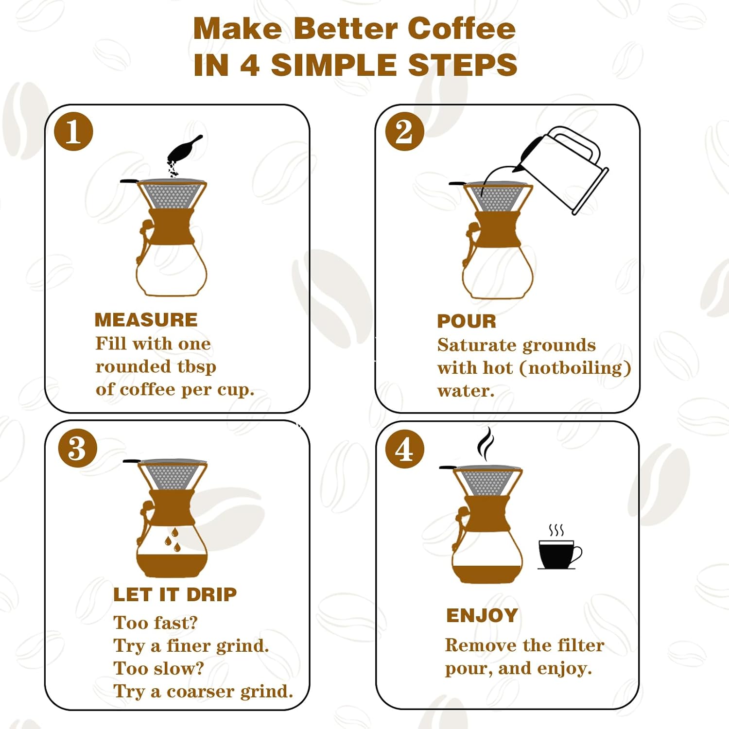 - 【HIGH-QUALITY POUR OVER COFFEE MAKER SET】This elegant pour over coffee set includes 1xstainless steel filter and 1x glass coffee pot. This 2 in 1 combination set perfectly meets your needs for making hand-made coffee. It is also a perfect choice for you to experience the fun of hand-made coffee.Give you a different coffee time.