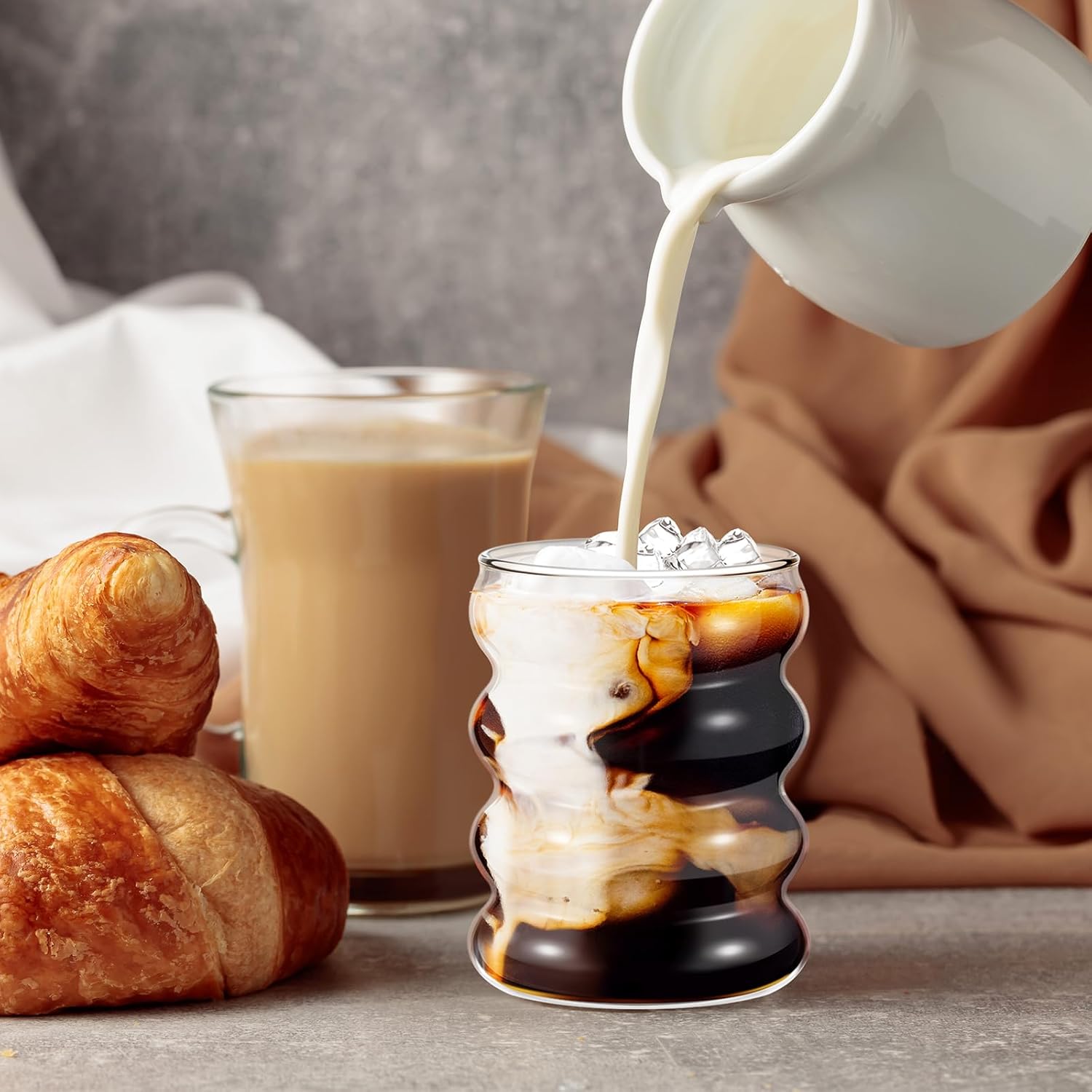 - Proper Capacity to Use: the aesthetic glasses are about 400 ml/ 13.5 oz and 480 ml/ 16 oz in capacity, can be widely applied for water, coffee, fruit juice, tea, milk, ice cream, yogurt, soda, and other beverages, making your drinks stand out
