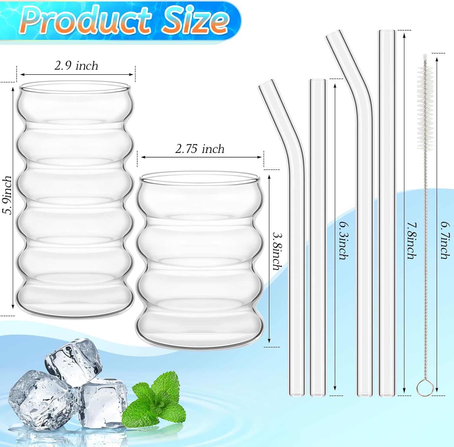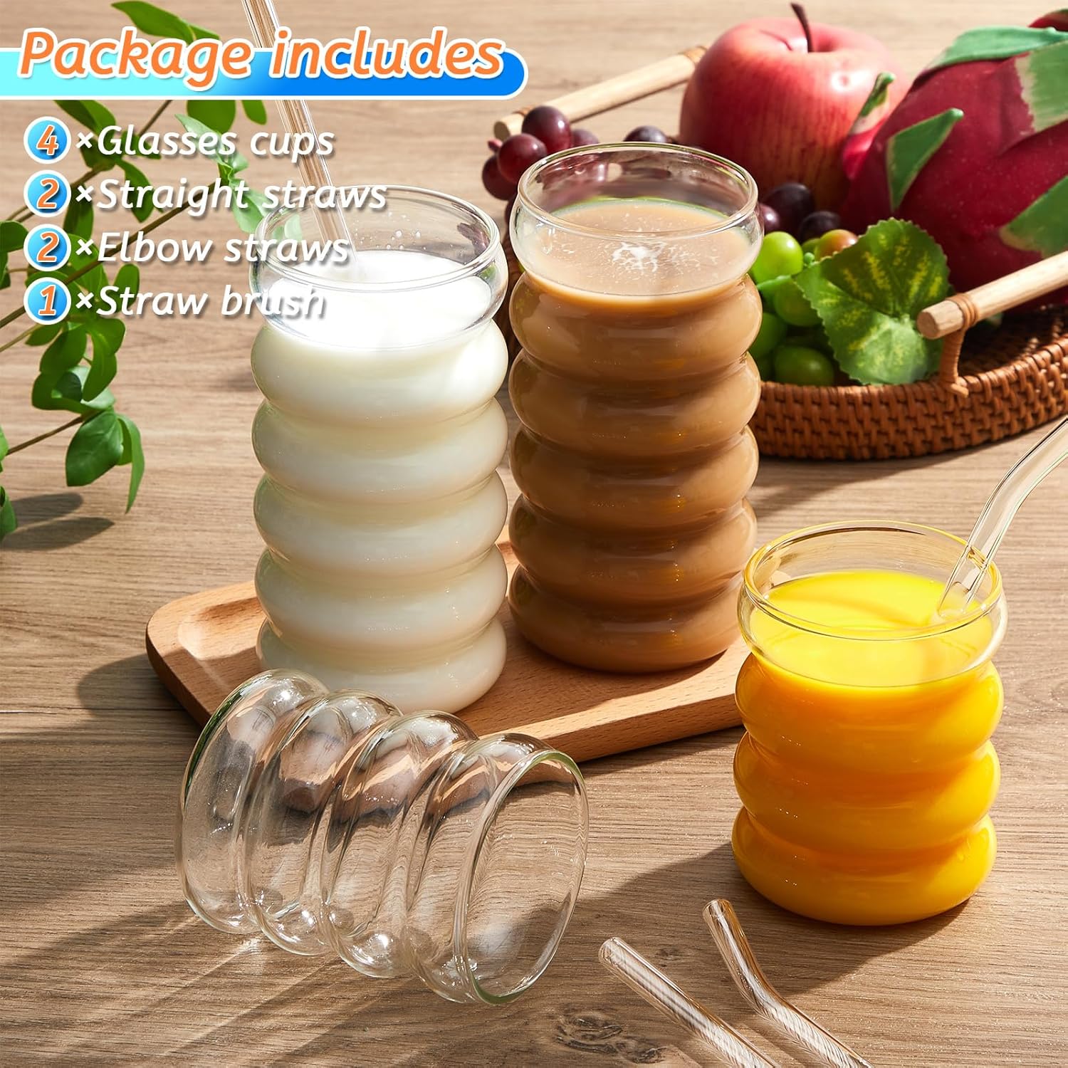 - Abundant to Use and Replace: the package includes 4 pieces of ribbed glasses, 2 pieces of straight straws, 2 pieces of elbow straws and 1 piece of straw brush, a nice combination for every day, events and parties use