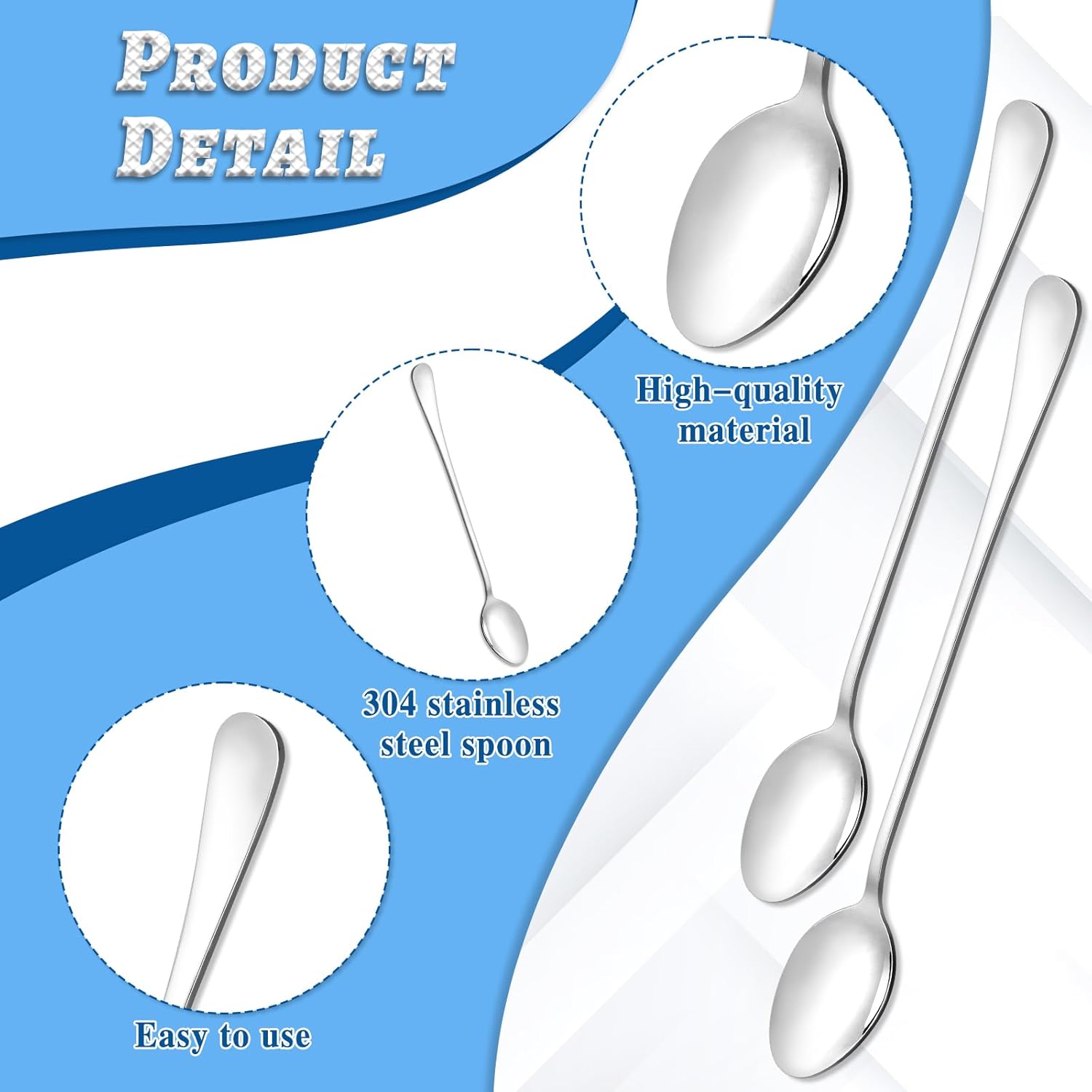- 【Size Details】Ice tea spoons long stainless steel size is 19.5*3*1cm/7.67*1.18*0.4 inches, iced tea long handle spoons appropriate weight, better control