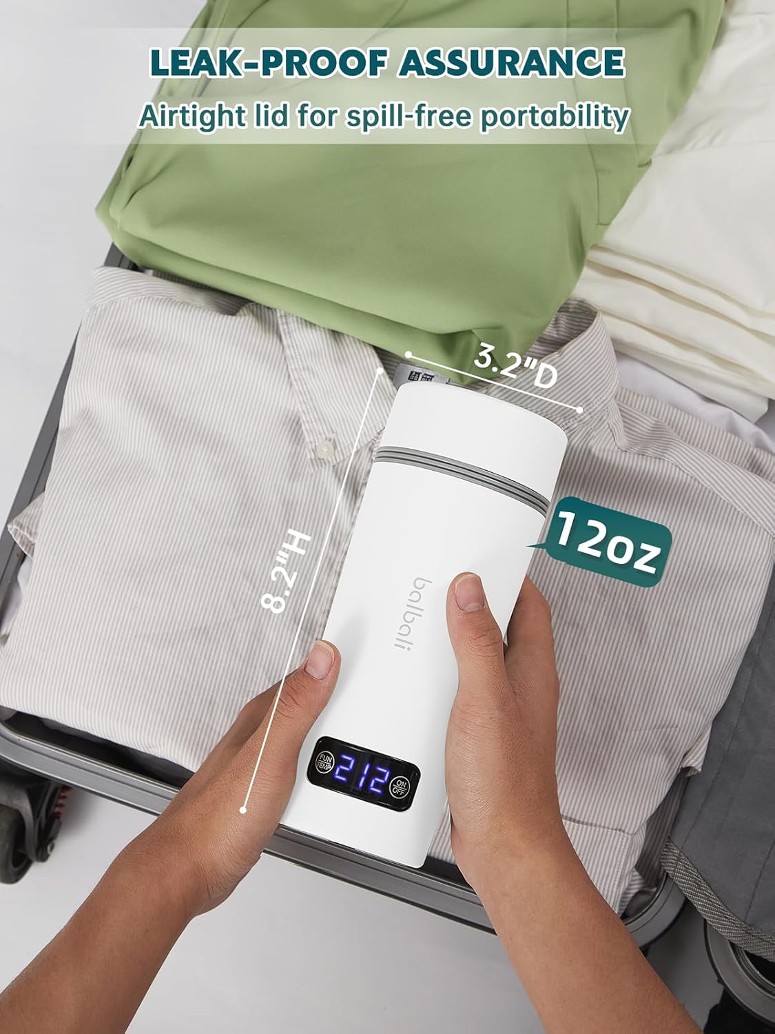 balbali Dual Voltage Travel Kettle 100-250V - 12oz Portable Water Boiler/Warmer/Heater for Boiling Water - 4 Preset Temperature Control Portable Tea Kettle Electric Travel - White