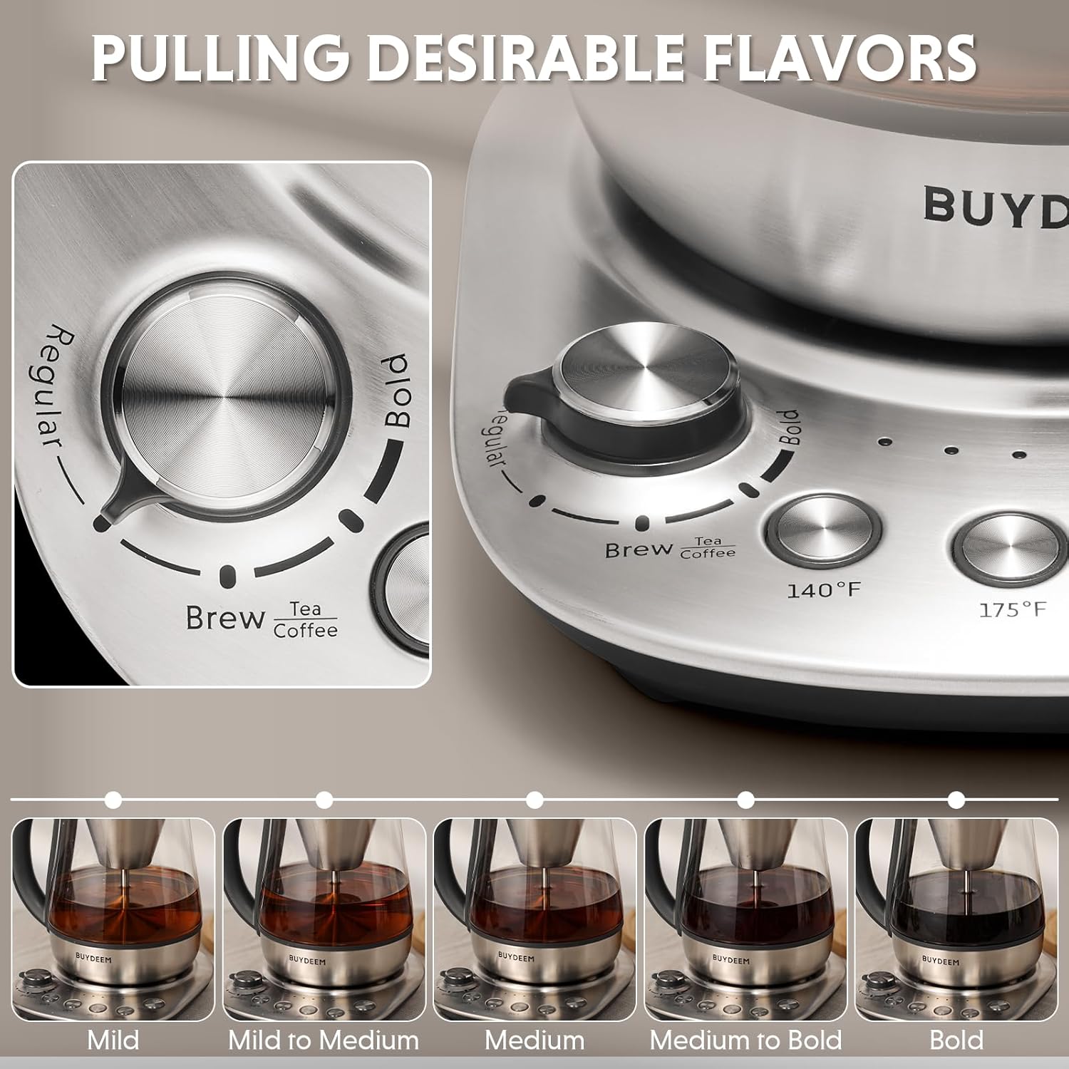 - 5 Flavors Available - Tailor your brewing experience with our selection of 5 unique brewing controls, allowing you to brew coffee and tea based on your taste preferences perfectly.