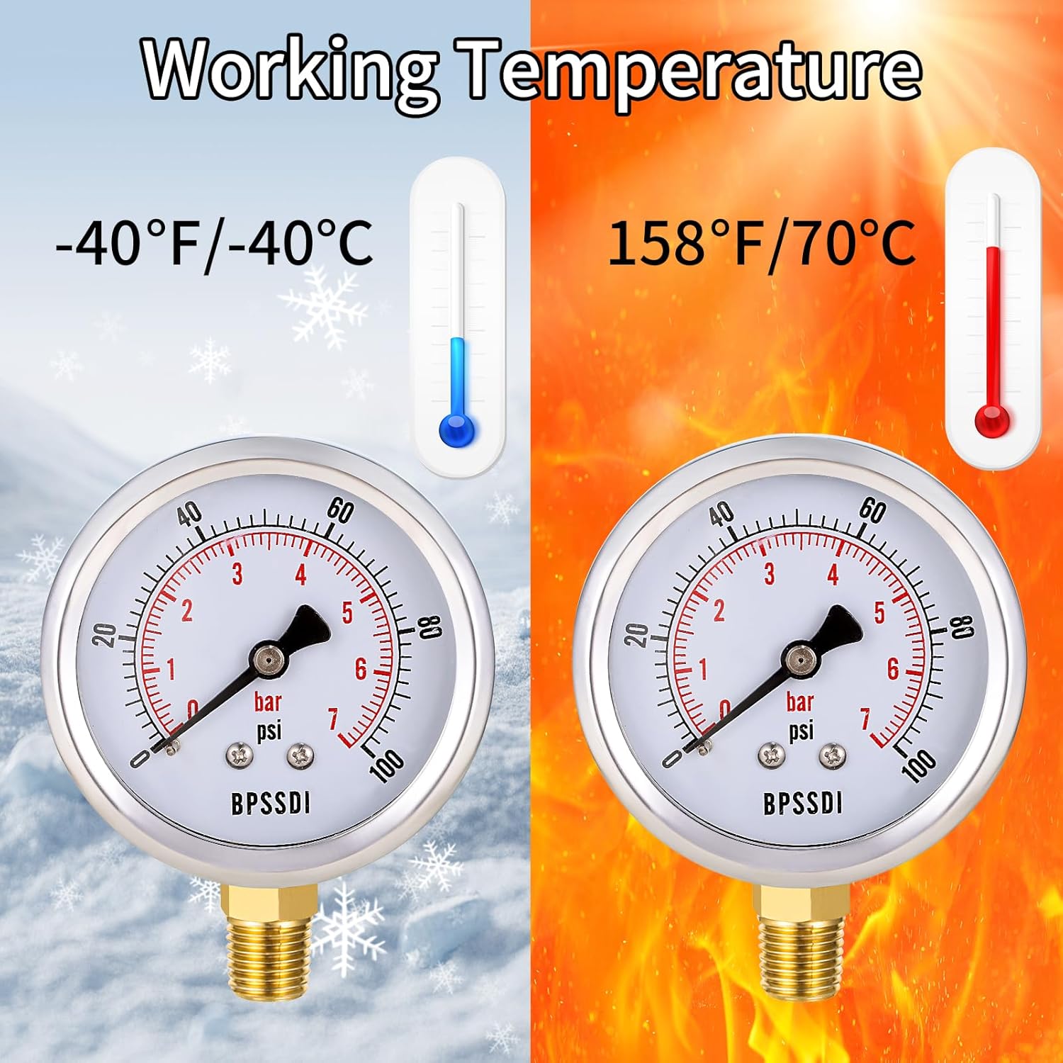 - Weather and Temperature Resistant - The pressure gauge can be used in environments from -40°C to 70°C in a variety of climates.