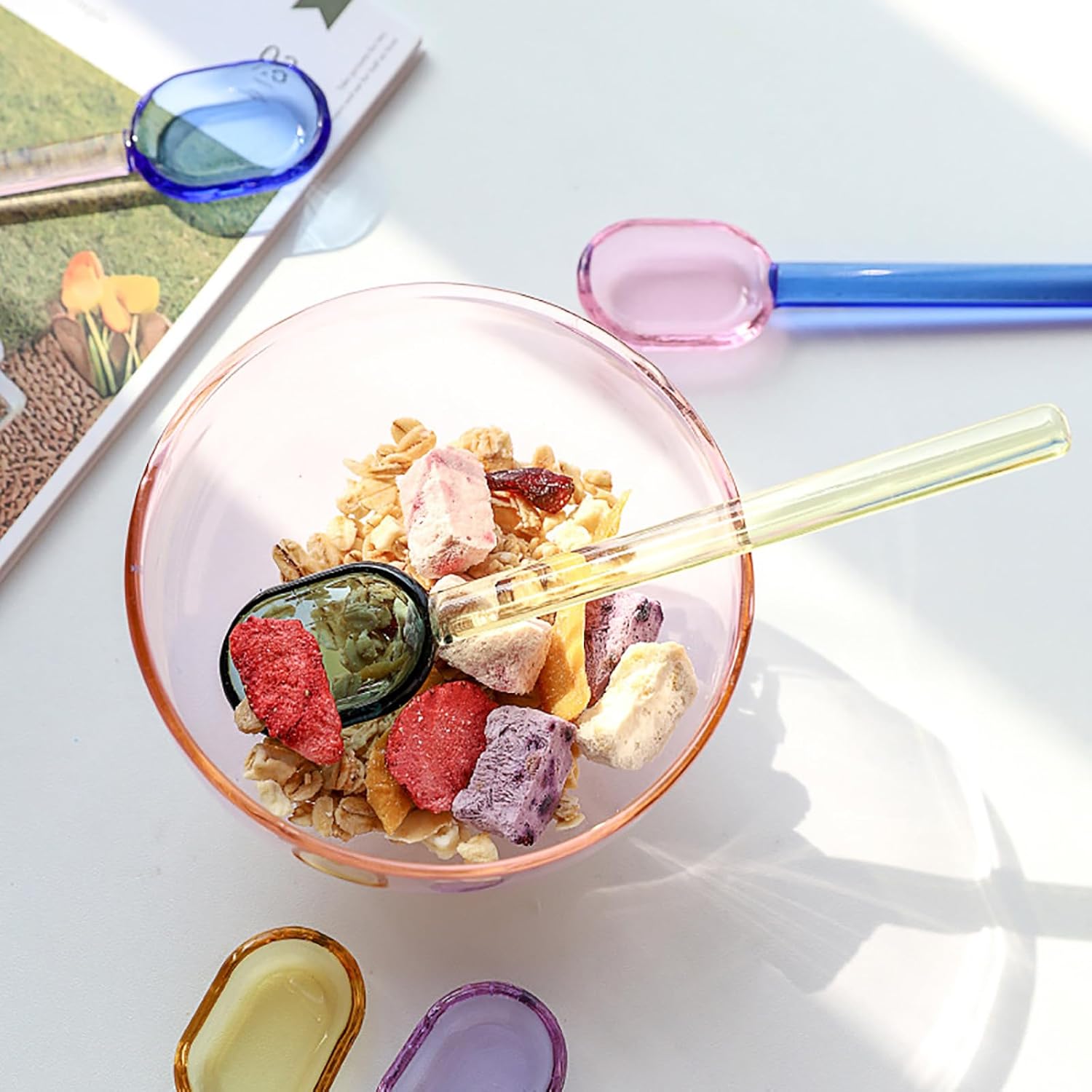 - 🍹Quality Material: Coffee stirring spoons are made of high borosilicate glass, heat and cold resistance, smooth surface without burrs, thick, washable and reusable, safe and can be used for a long time; Package include 5pcs in 5 different colors.