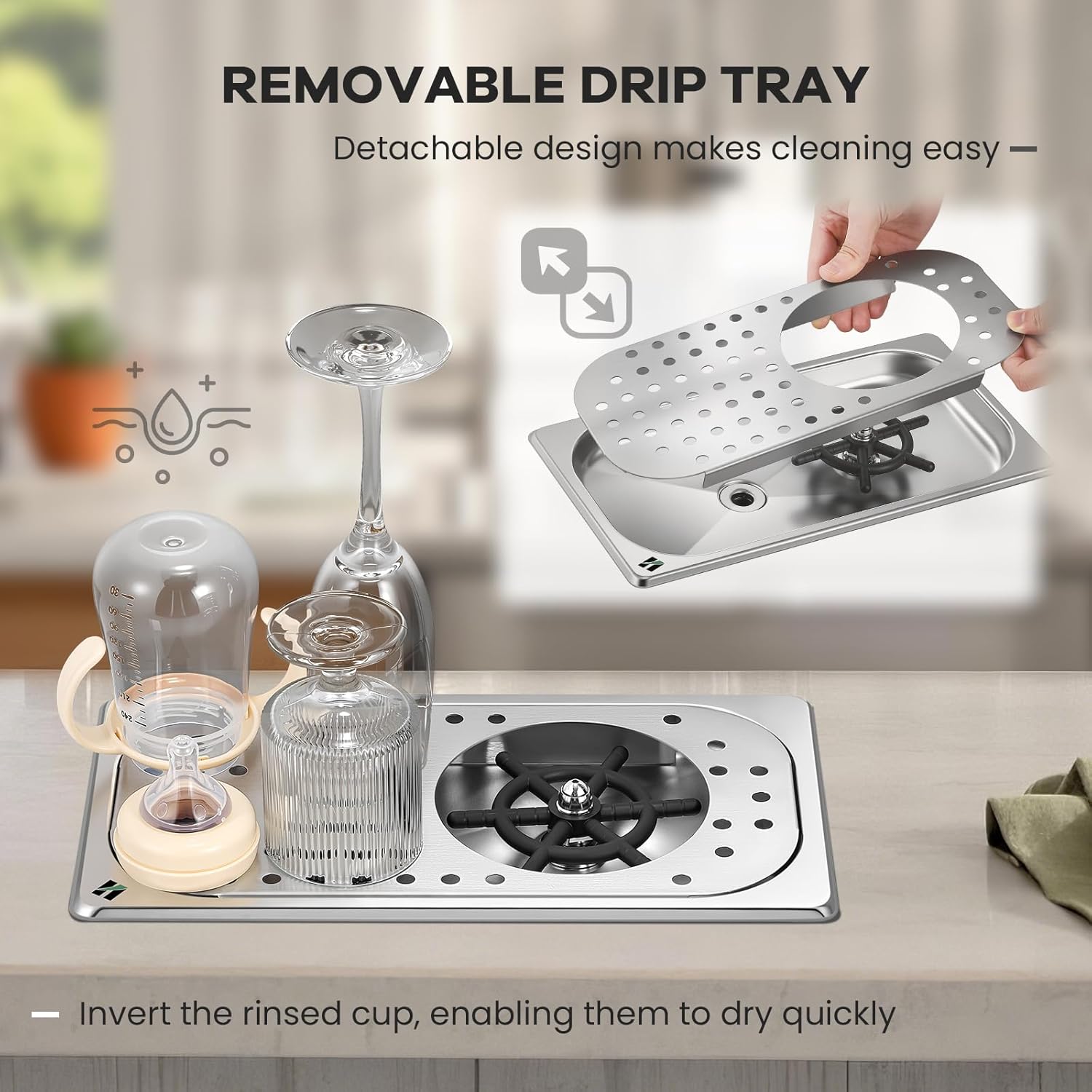 - [Premium 304 stainless steel] Crafted from high-quality 304 stainless steel, this glass rinser for kitchen sink is built to last. Rust-resistant, corrosion-proof, and free of coatings, it ensures durability without the worry of peeling finish. Enjoy a lifetime of reliable performance
