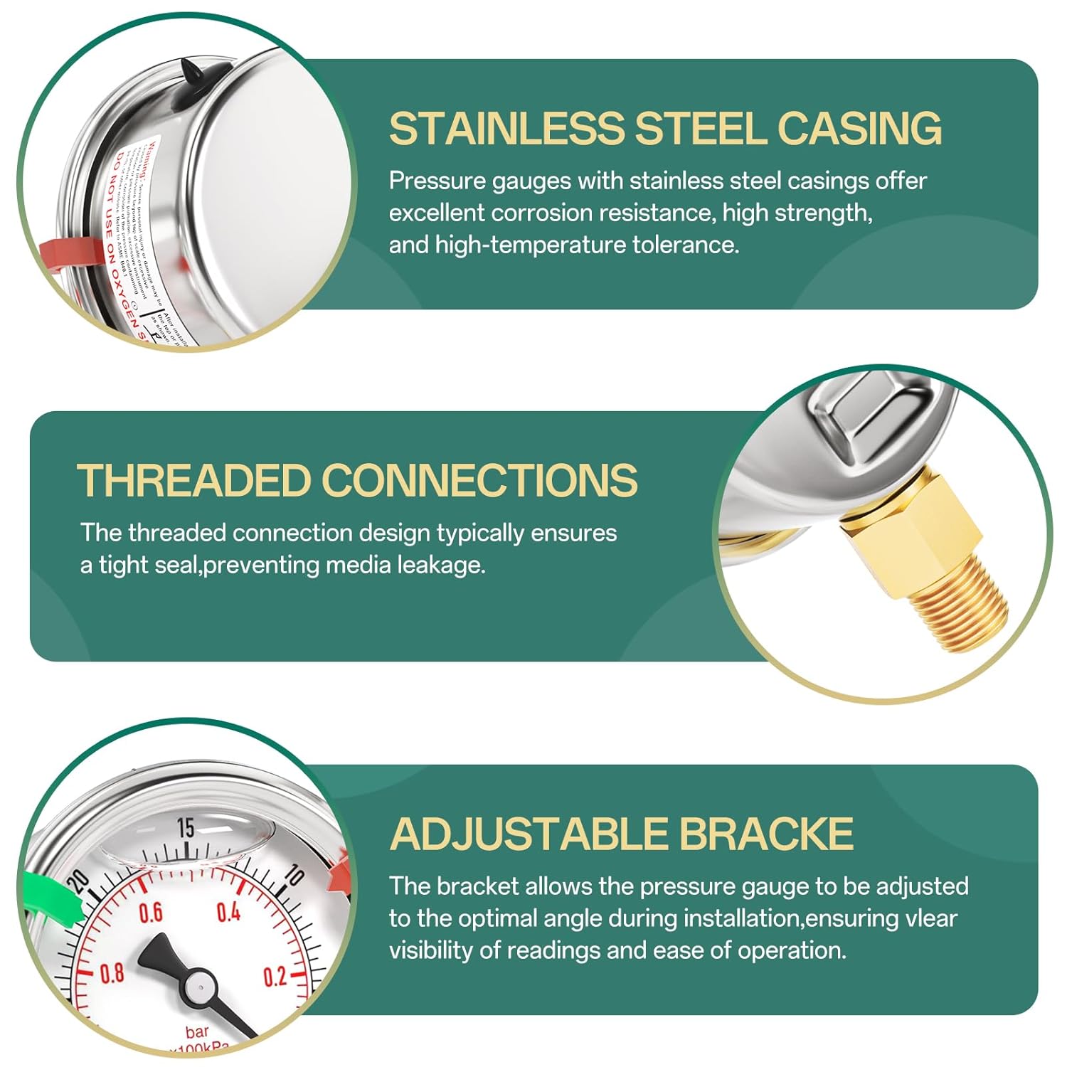 - SIZE: 2.5" dial size, 1/8" NPT lower mount