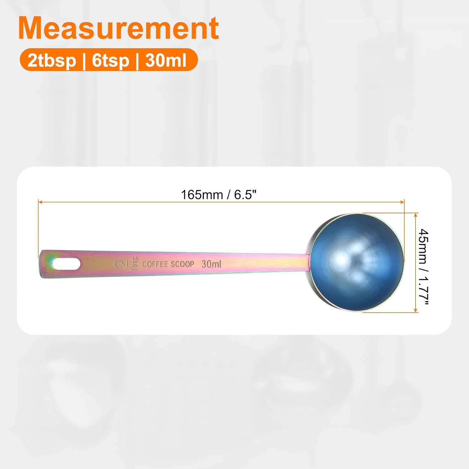 HARFINGTON Coffee Scoop Spoon 2tbsp (6tsp, 30ml) 304 Stainless Steel Long Handle Teaspoon/Tablespoon Measuring Spoons Scoops for Tea Sugar Kitchen, Multicolor