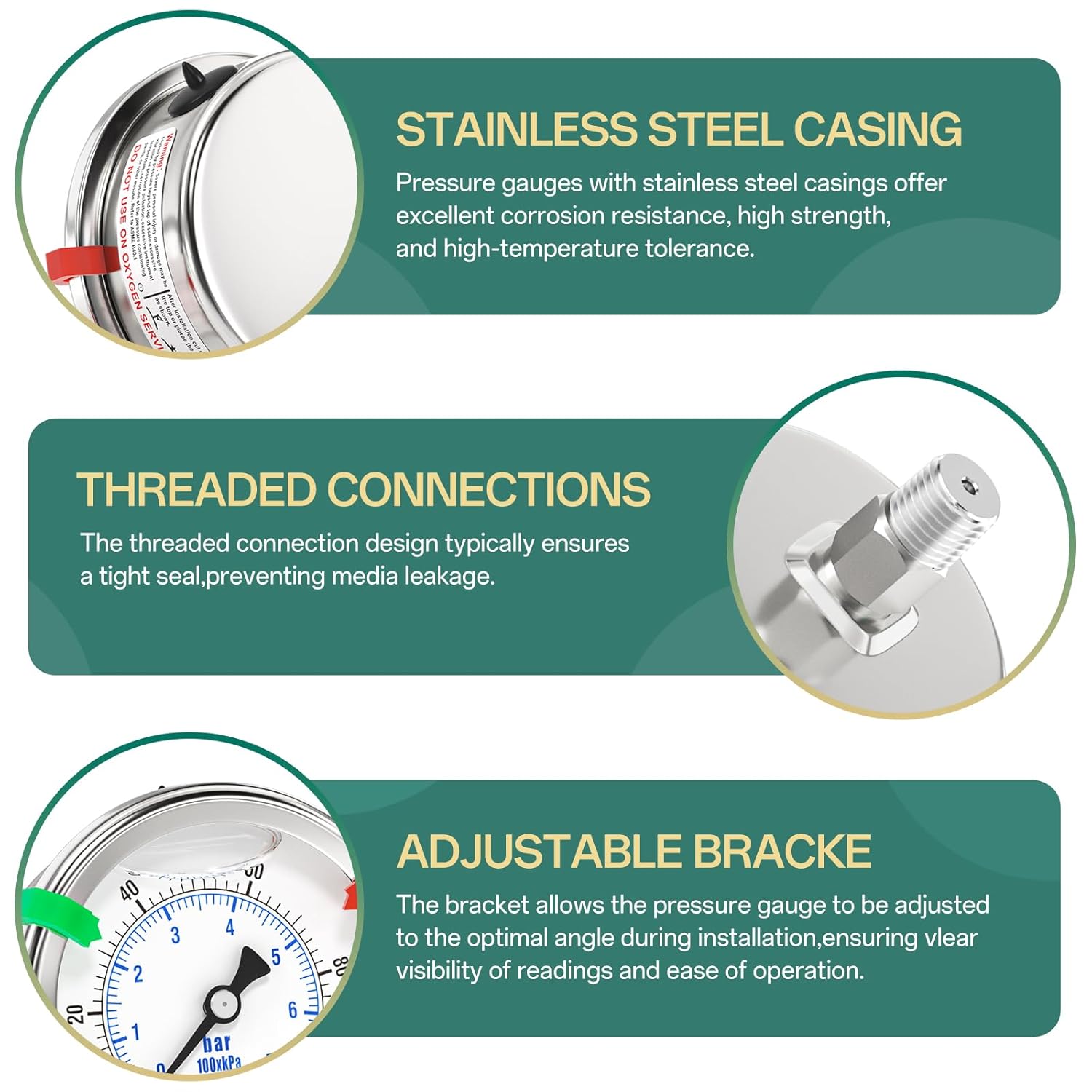 - [PRODUCT NAME] Stainless Steel Liquid Filled Pressure Gauge