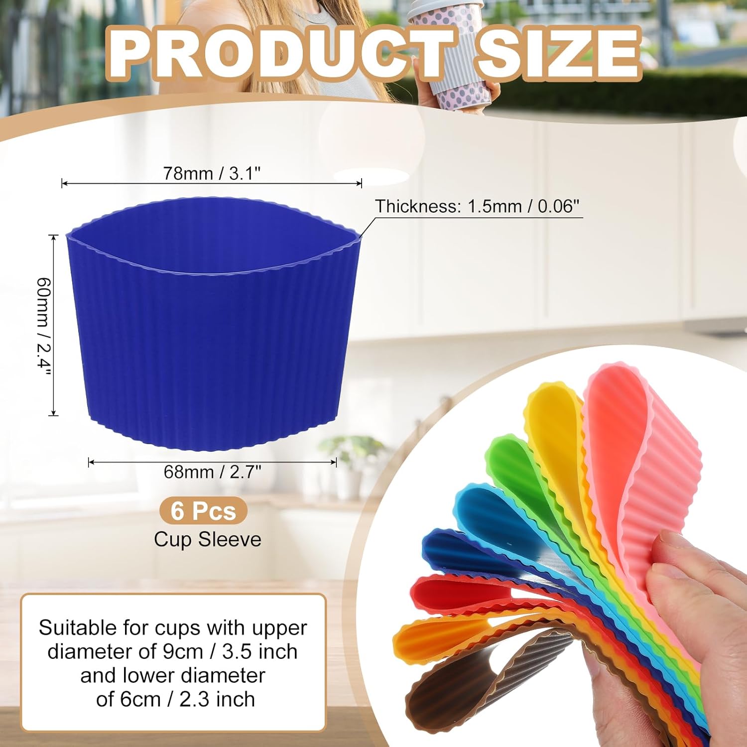 - Specification: Color: Dark Blue; Material: Silicone; Style: Tapered Stripes; High: 60mm / 2.4 inch; Upper Diameter: 78mm / 3.1 inch; Lower Diameter: 68mm / 2.7 inch; Thickness: 1.5mm / 0.06 inch; Applicable Cup Upper Diameter: 9cm / 3.5 inch; Applicable Cup Lower Diameter: 6cm / 2.4 inch; Package Contents: 6 x Cup Sleeve