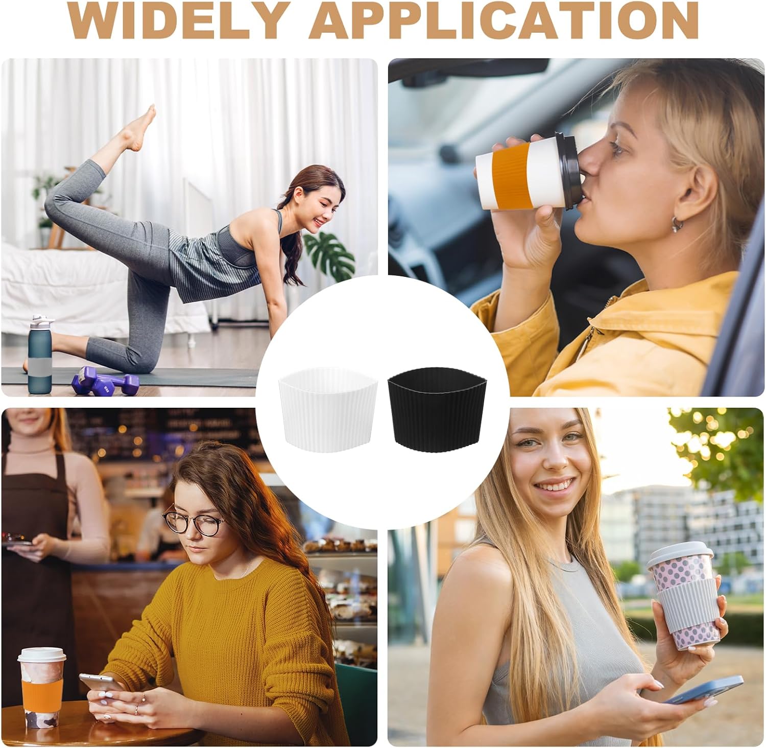 uxcell 6Pack Coffee Cup Sleeves, Reusable Silicone Heat Resistant Cup Protective Sleeve Nonslip Mug Protector Cover for Home Travel Coffee Mug Glasses Water Bottle Boots, White/Black