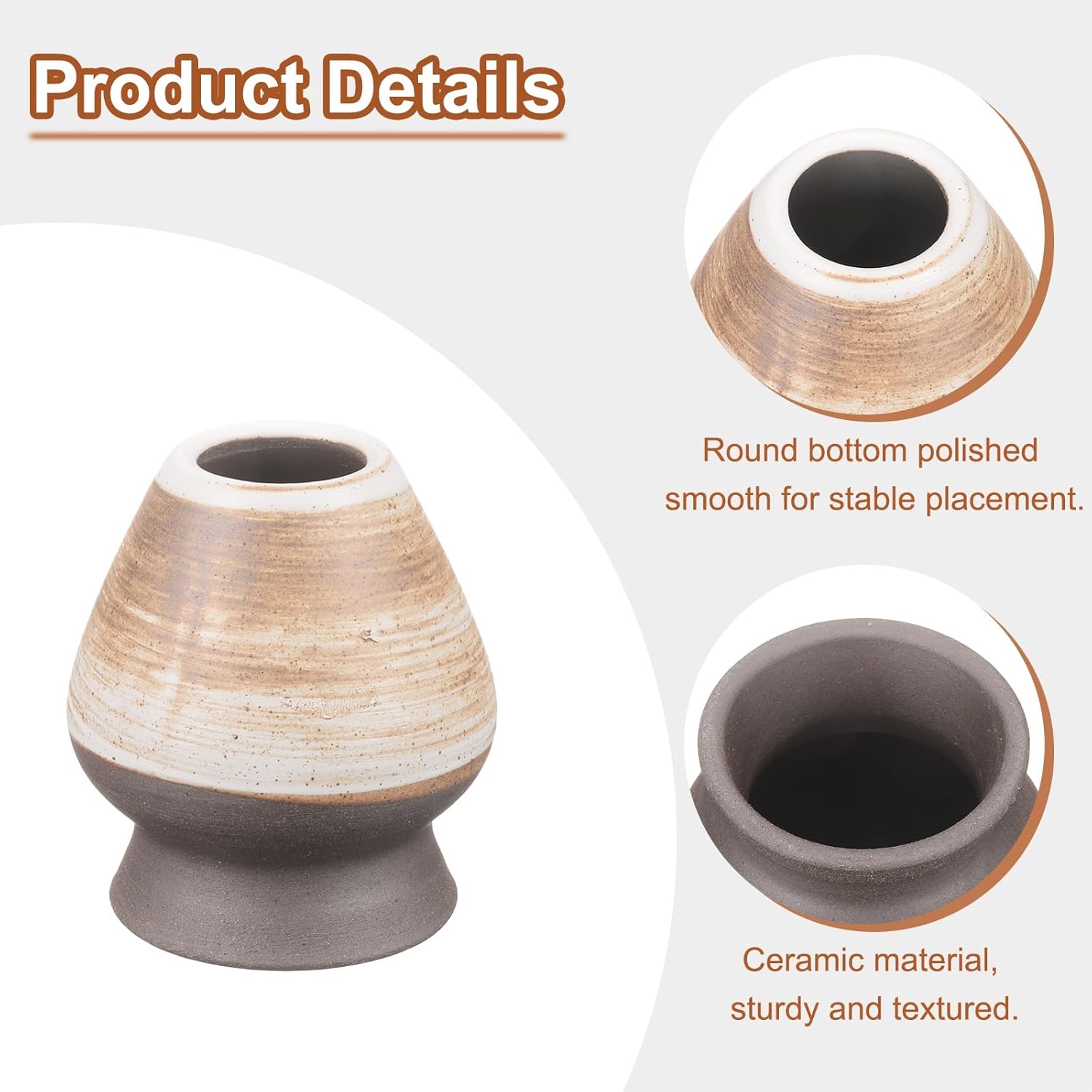 - Material - The tea whisk holder is made of ceramic, which is sturdy and textured, keeps it clean, and extends the life of the tea whisk. It adopts a simple design style, and the bottom is polished smoothly and finely, aiming to provide a stable and convenient support platform for placing the tea whisk.