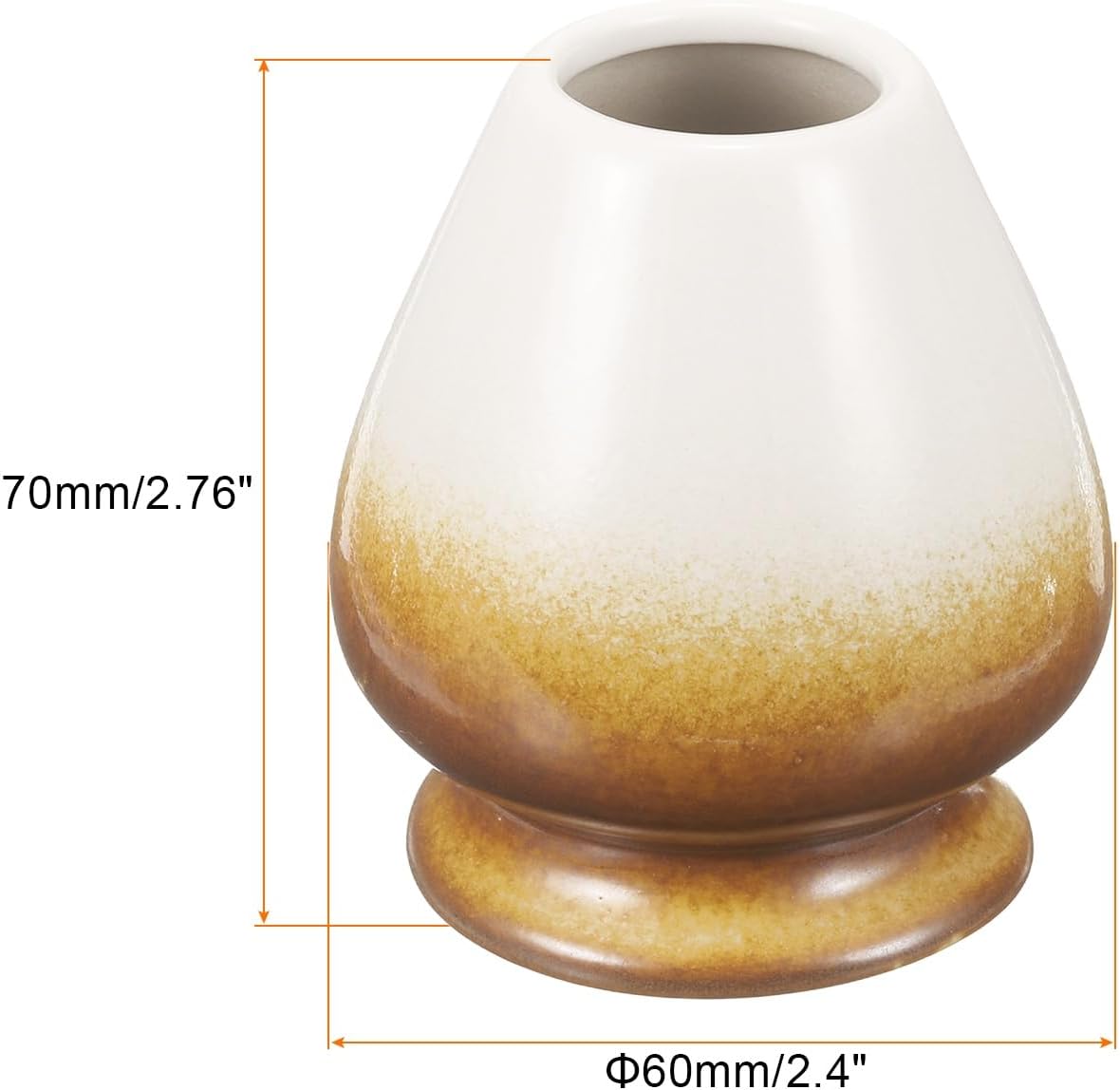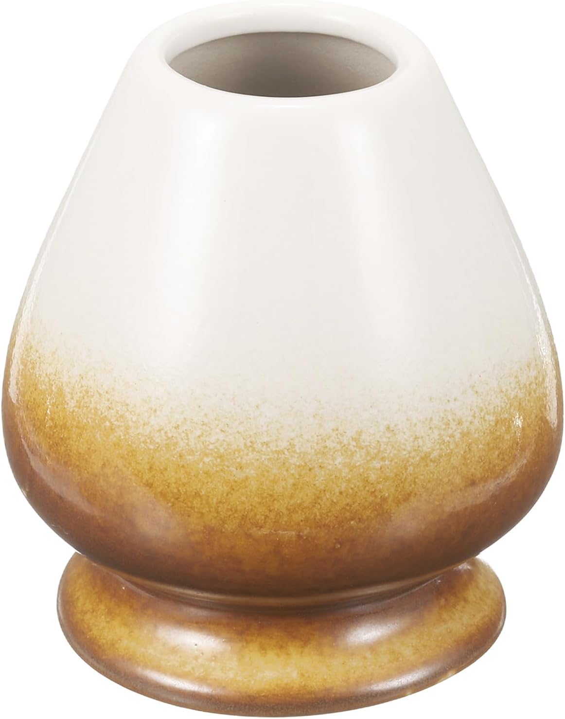 HARFINGTON Ceramic Chasen Stand 70mm Matcha Whisk Holder Teas Set Whisks Stand Traditional Matcha Tea Chasen Holder Tea Set Accessories for Tea Tasting, Brown/White