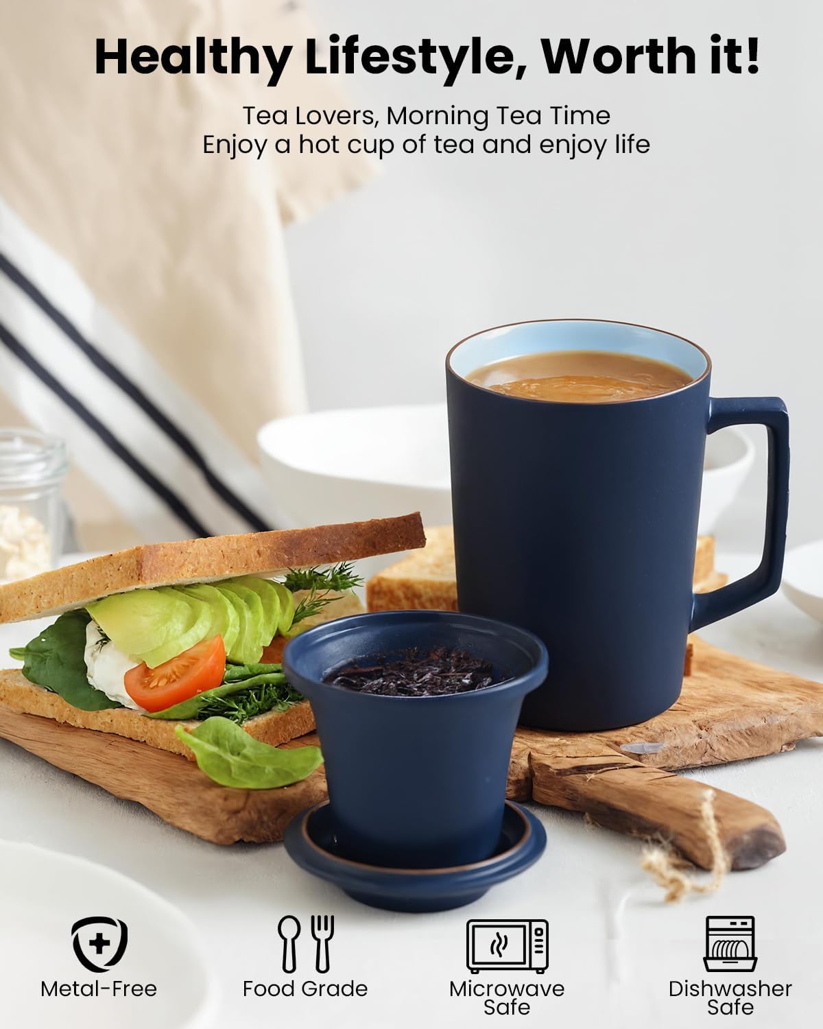- LEAD-FREE & HEALTHY BREWING :Crafted with food-safe, lead-free ceramic glaze, our Tea Infuser Cup with Lid guarantees no harmful chemicals leach into your drink. A safer choice for daily use.