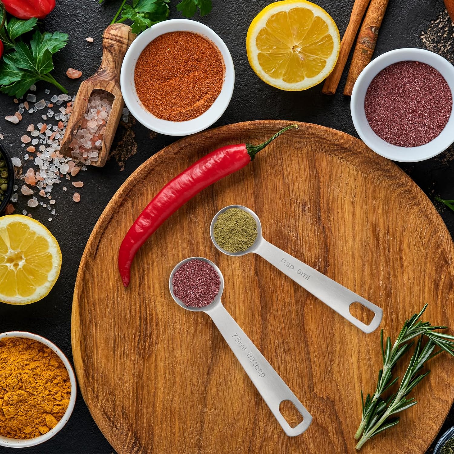 - Perfect Round Scoop: Unlike ordinary measuring spoons, the handle is ergonomic and the round bowl is designed to deepen to ensure that spices don't spill. Perfect to use for teaspoon measurements from a jar
