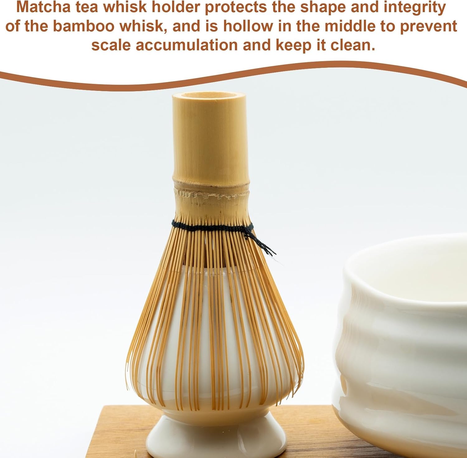 - Feature - The matcha tea whisk holder protects the shape and integrity of the bamboo whisk without worrying about its bristles bending. The middle is hollow, which helps the drying process and prevents scale accumulation.